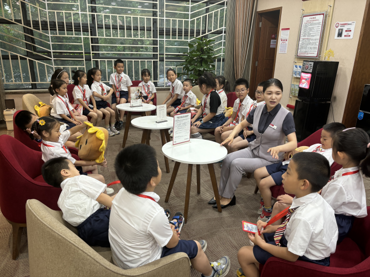 小朋友們來到二樓會議室,銀行市場主管向大家科普了簡單的理財知識,引導他們樹立正確的金錢觀,教授他們基本的消費技能,現(xiàn)場的小朋友們聚精會神,聽得津津有味。