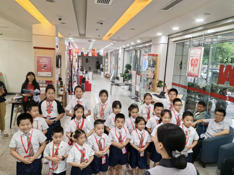 “小小銀行家們 ”由銀行工作人員帶領(lǐng)著走進銀行各個區(qū)域,先后學習了自助機器、點鈔機、防彈玻璃等的使用方法和功能,深入了解了銀行基礎(chǔ)業(yè)務(wù)內(nèi)容和辦理流程,近距離地感受了緊張有序的工作氛圍和工作人員嚴謹細致的工作態(tài)度。